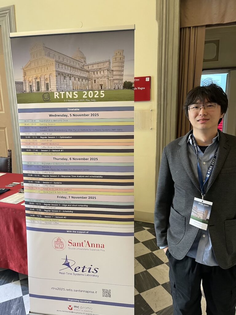 In The 33rd International Conference on Real-Time Networks and Systems (RTNS2025) held in Pisa, Italy, on Nov. 5-7 in 2025, Mr. Kohei Taniguchi, Ph.D candidate, presented the following accepted paper.
